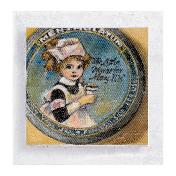 Little Nurse Art Block - 5x5 Canvas Print on Wood Frame - Realistic Portraiture Style - Wall Art - Home Decor by PeyLu